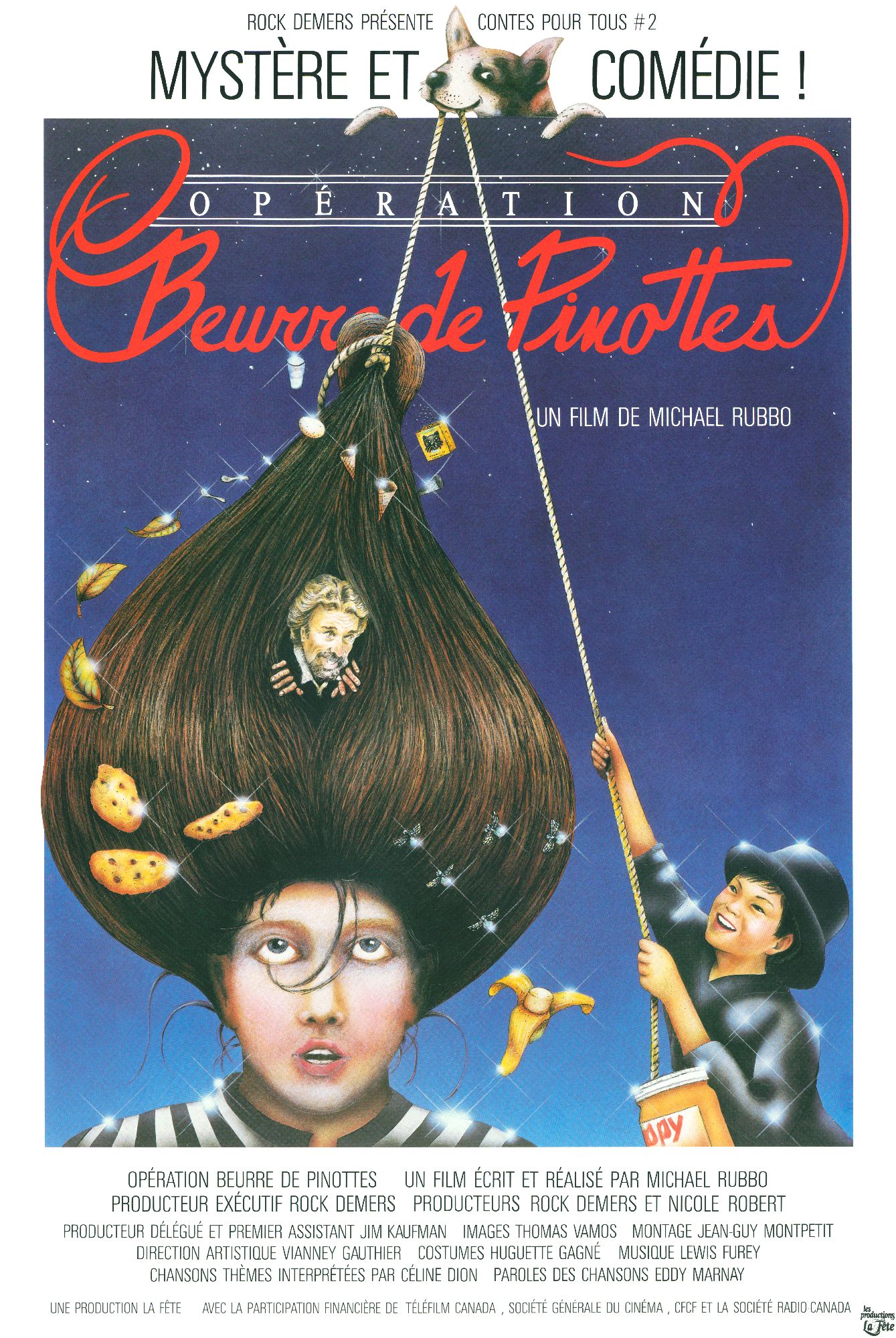 Le deuxième film des Contes pour tous Opération beurre de pinottes (1985) a été écrit et réalisé par Michael Robbo, qui réalisera aussi trois ans plus tard Les Aventuriers du timbre perdu. Après une grosse frayeur, le jeune Michel perd ses cheveux qui ne repoussent plus. Avec une formule magique à base notamment de mouches noires, d’œuf pourri et de beurre de pinottes, Michel concocte une potion qu’il s’applique sur le crâne. Dès le lendemain, ses cheveux recommencent à pousser, mais le problème est qu’ils poussent de 24 cm par heure. Bien que Connie, un camarade de classe, et que Suzie, sa grande sœur, lui coupent les cheveux, rien n’y fait. Michel est vite expulsé de l’école, les coups de ciseaux (de Connie lui coupant les cheveux) dérangent les professeurs. Peu de temps après, il se fait enlever ainsi qu’une vingtaine d’autres enfants…