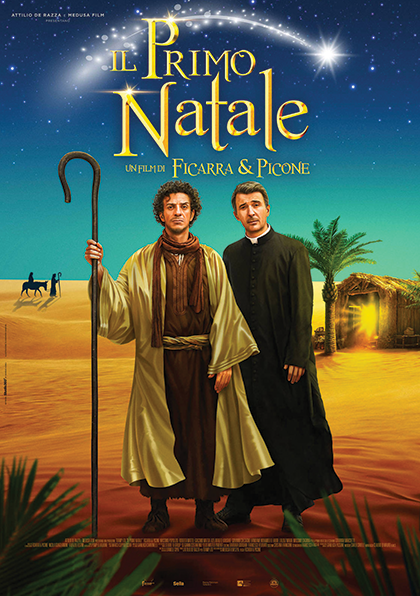 Il primo Natale - afficheEn 2019, l’église d’un petit village en Sicile organise une crèche de Noël. Valentino, un prêtre traditionaliste sur qui on peut généralement se fier, mais qui prie en premier et agit ensuite est en charge du projet. Salvo, un misérable voleur égoïste qui a l’intention de voler la statue de l’enfant Jésus pour ensuite la vendre pour de l’argent auditionne pour le rôle de St. Joseph. Après le vol de la statue, Salvo est poursuivi par Valentino dans les marais. Les deux protagonistes sortent des buissons, et se retrouvent au milieu du désert palestinien à l’époque de la naissance de Jésus. Suite à leur détention par des soldats romains, les deux réalisent qu’ils doivent travailler ensemble pour aller à la recherche de la Vierge Marie. Seulement un miracle pourra peut-être les aider à retrouver leur chemin vers la maison.